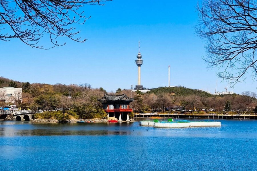 В южнокорейском городе Тэгу находится большой природный и развлекательный парк Дурью – одно из самых популярных мест для прогулок на свежем воздухе.